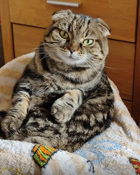 MÄUSI heißt die Scottish Fold Katze, die auf einer unserer liebevollen Pflegestellen in Wipperfürth lebt. Aufgrund geänderter Lebensumstände hat sie ihr früheres Zuhause, wo sie von klein an gelebt hat, verlassen und hat sich inzwischen gut in ihrem vorübergehenden Zuhause eingelebt. Die 6 Jahre alte MÄUSI hat ein eher ruhigeres Gemüt, schläft gern und sie liebt es, gestreichelt zu werden. Mit den lieben Hunden, die in ihrer Pflegestelle leben, kommt sie gut klar - auf die Gesellschaft von Artgenossen kann sie verzichten. Sie zeigt sehr genau, was sie mag und was nicht. Mit einem leisen Fauchen setzt sie deutlich ihre Grenzen. Ihre Rasse ist eine Qualzucht! Denn da der Scottish Fold Katze sehr kurze Beine, große Augen und ein Stummelschwänzchen sowie nach vorne gefaltete Ohren angezüchtet wurden, leiden diese Katzen häufig an Gelenkschmerzen oder sie niesen häufig. Noch konnten wir bei MÄUSI nichts derartiges feststellen und den Tierarztcheck, den bei uns jedes Tier, das in unsere Obhut kommt, durchläuft, hat sie mit Bravour bestanden. Trotzdem sollten sich die endgültige Familie von MÄUSI dessen bewusst sein und lebenslang immer ein besonderes fürsorgliches Auge auf sie haben.